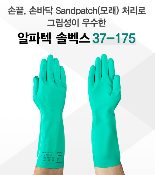 손끝 / 손바닥에 Sandpatch(모래) 처리로 그립성이 우수한 내화학장갑