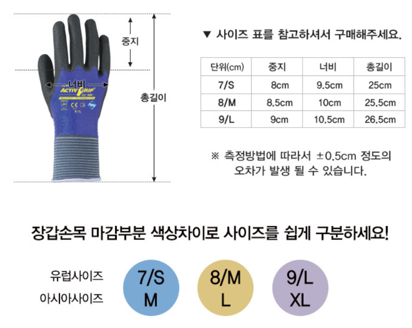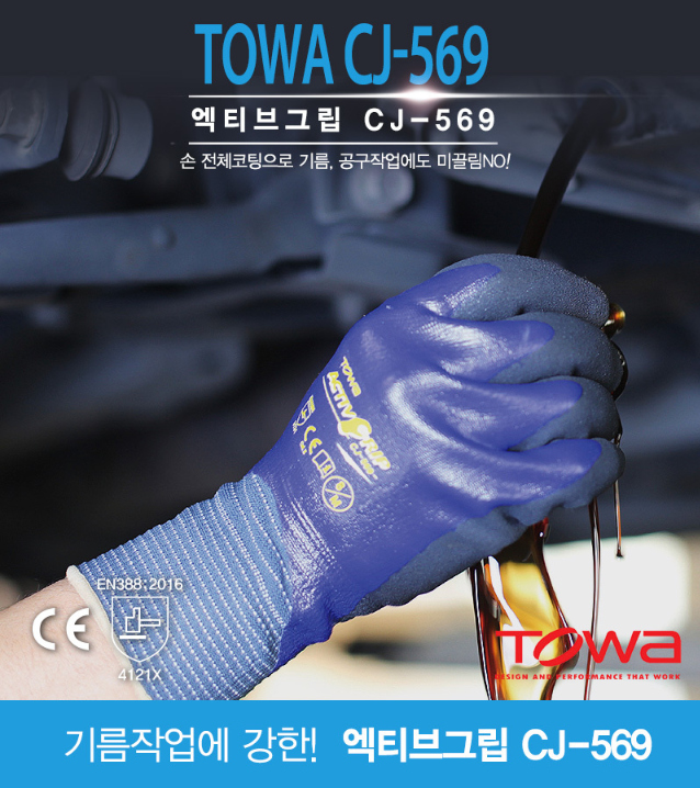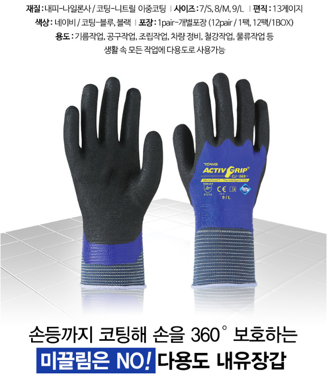 품명 ■ 손 전체코팅으로 기름, 공구작업에도 미끌림이 없음