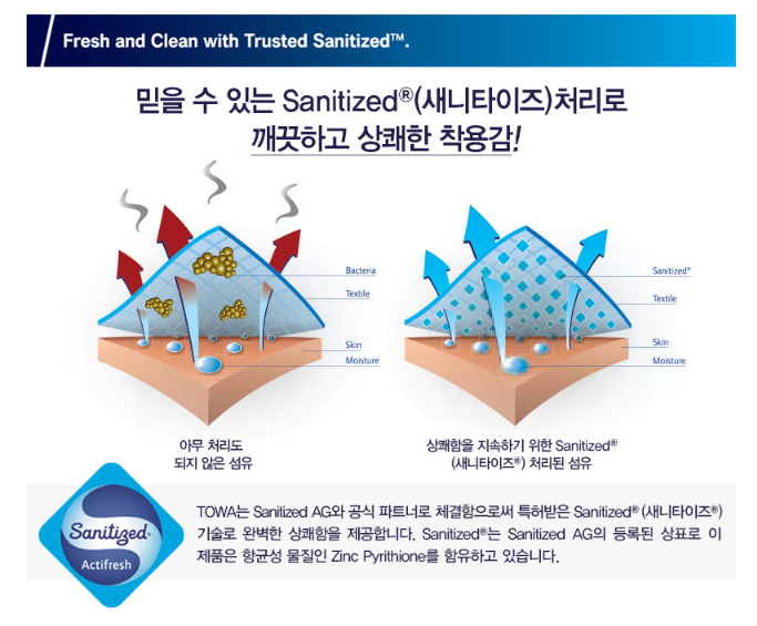 ■깨끗하고 상쾌한 착용감 - 믿을 수 있는 새니타이즈 기술로 박테리아, 곰팡이를 방지하고 억제하여 항상 쾌적한 착용감을 제공합니다.