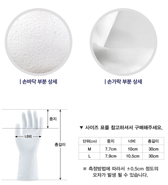 잘 벗겨지지 않는 장갑 - 장갑 사용 중 잘 벗겨지지 않도록 손목 부분은 좁게, 착용하기 편하도록 입구는 넓게 제작되었습니다.