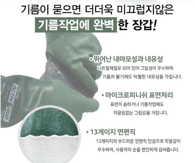 기름이 묻으면 더더욱 미끄럽지않은 기름작업에 완벽한 장갑
