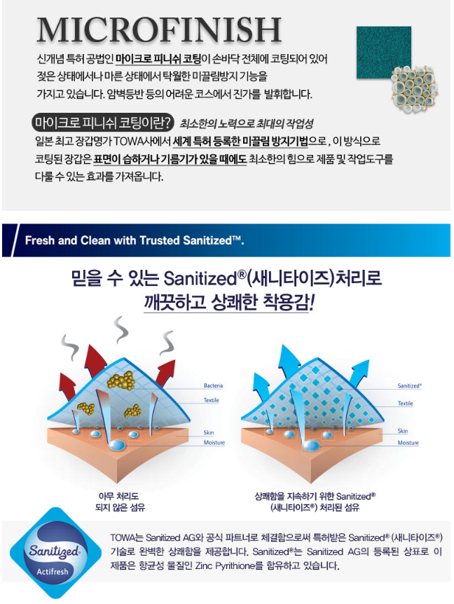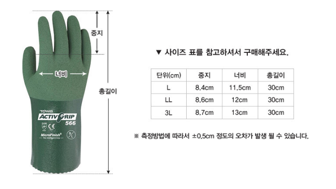 뛰어난 내마모성과 내유성 - 니트릴재질로 되어 있어 그립성이 우수하며 기름과 물기에도 탁월한 내유성을 가집니다.