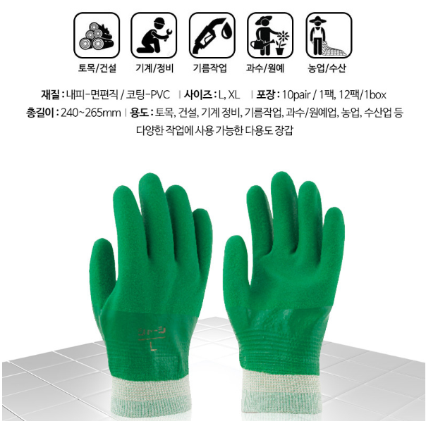 토목, 건설, 기계정비, 기름작업, 과수/원예업, 농업, 수산업 등 다양한 작업에 사용가능한 다용도 장갑