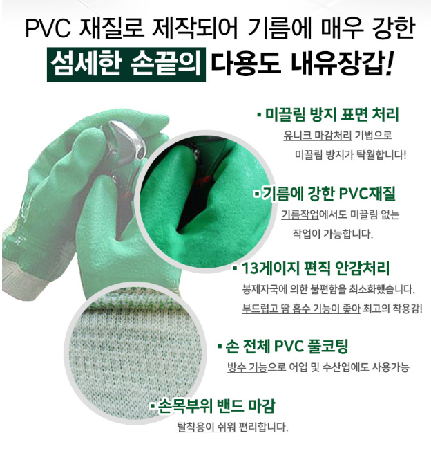 ■기름에 강한 PVC재질 - 기름작업에서도 미끌림 없는 작업이 가능합니다.