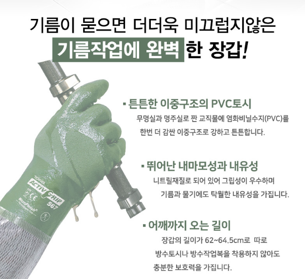 기름이 묻으면 더더욱 미끄럽지않고 기름작업에 완벽한 장갑