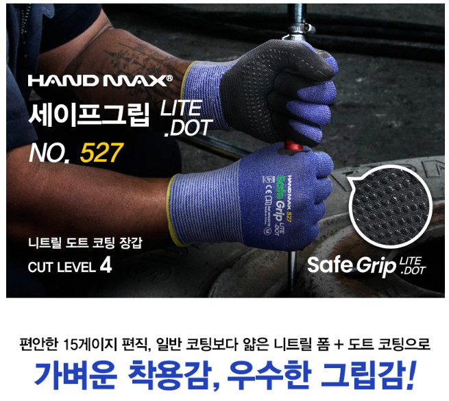 일반 코팅보다 얇은 니트릴 폼 + 도트 코팅으로 가벼운 착용감, 우수한 그립감!