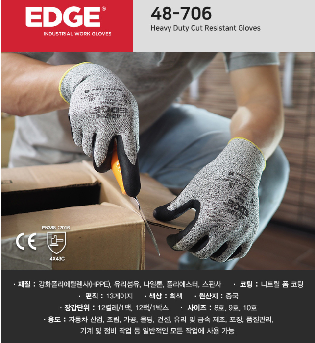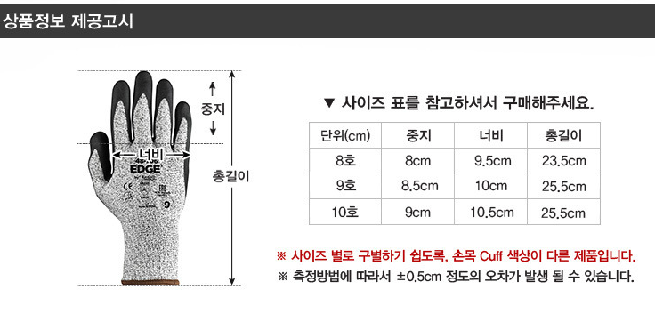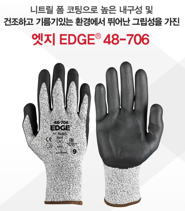 품명 ■ 니트릴 폼 코팅으로 높은 내구성을 가짐 ■ 뛰어난 내마모성 및 우수한 베임보호