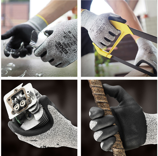 HPPE,스판덱스, 폴리에스테르, 유리섬유, 베임C등급, 니트릴 코팅장갑