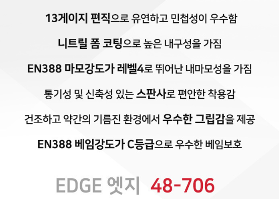 ■13게이지 편직으로 유연하고 민첩성이 우수함