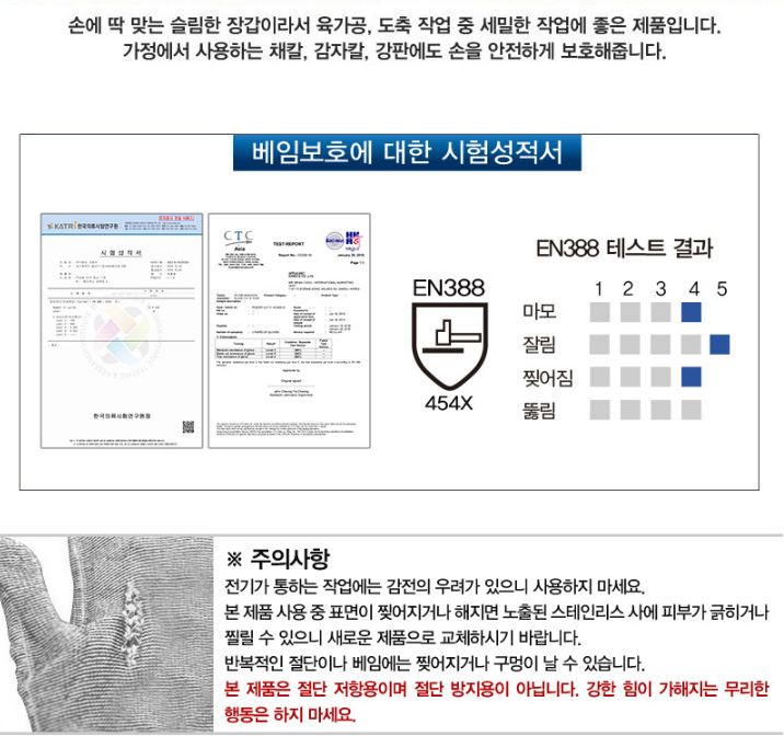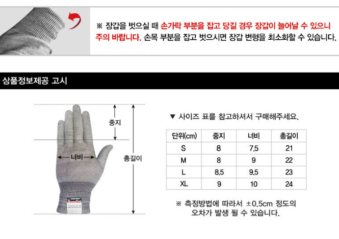 품명 ■ 스테인레스 철심사로 컷레벨5 최상의 베임 방지 ■ 내 손에 딱 맞는 착용감