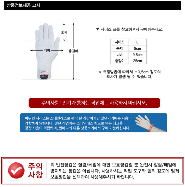 품명 ■ 초강력 스테인레스 스틸사로 편직하여, 어떠한 원사보다 베임에 대한 저항성이 강해 손을 안전하게 보호