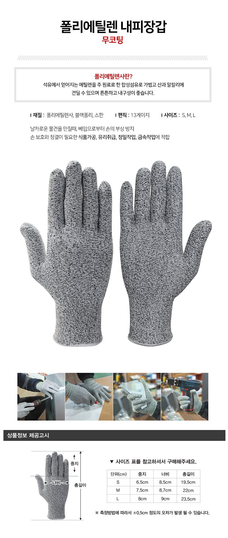 품명 ■ 날카로운 물건을 만질때, 베임으로부터 손의 부상 방지