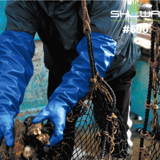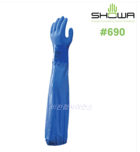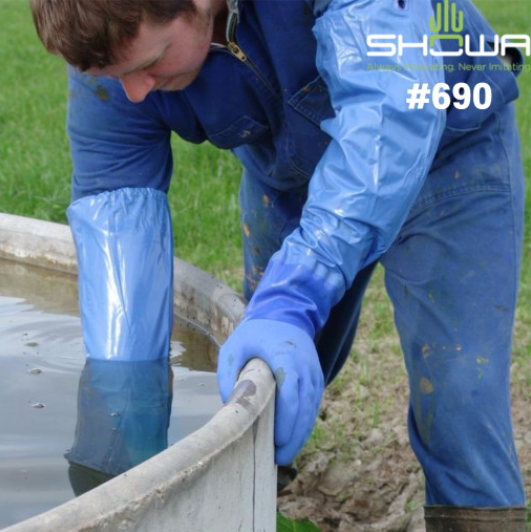 쇼와 690 PVC 삼중 코팅 토시형 안전 장갑 내유 내화학 방수 작업용 / 1켤레