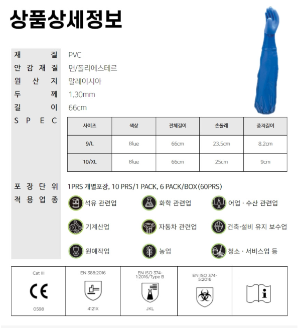 660 PVC 장갑에 어깨까지 COVER를 붙여 오일 또는 화학 물질을 처리하기 위한 PVC LONG SLEEVE 장갑