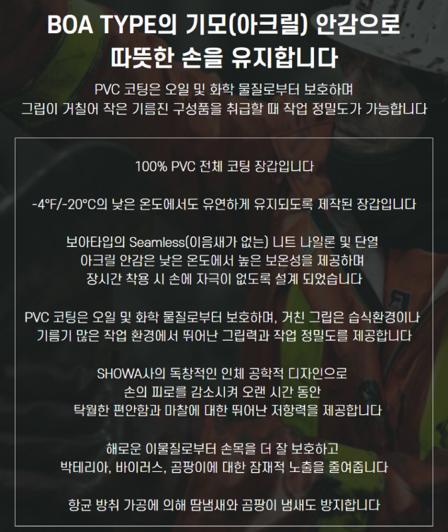 ■BOA TYPE의 기모(아크릴) 안감으로 따뜻한 손을 유지