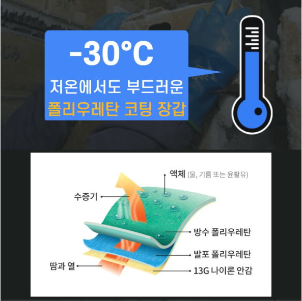 품명 ■ -30℃ 저온에서도 부드러운 폴리우레탄 코팅 장갑
