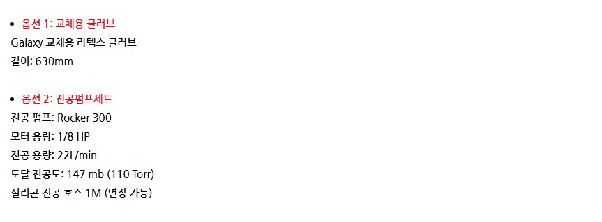 또한 교체용 라텍스 글러브와 진공펌프세트를 옵션으로 제공하여, 필요에 따라 확장성과 실험 효율성을 높일 수 있습니다.