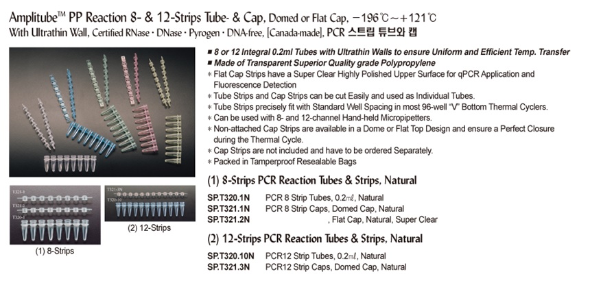 Amplitube TM PP Reaction 8- & 12-Strips Tube- & Cap, Domed or Flat Cap, -196℃~+121℃With Ultrathin Wall, Certified RNase·DNase·Pyrogen·DNA-free, [ Canada-made ] , PCR 스트립 튜브와 캡