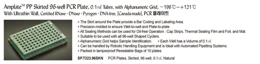 Amplate TM PP Skirted 96-well PCR Plate, 0.1 ㎖ Tubes, with Alphanumeric Grid, - 196℃~+121℃With Ultrathin Wall, Certified RNase·DNase·Pyrogen·DNA-free, [ Canada-made ] , PCR 플레이트