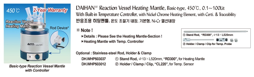 품명 반응조용 히팅맨틀 , 온도 조절기 내장, 기본형,Ni-Cr열선내장 / Stand Rdd, Clamp