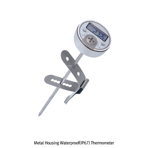 Metal Housing Waterproof (IP67) Thermometer, with Z-Clip & Protective Plastic Sleeve Ideal for Kitchen or Lab, Max/Min, with NTC-Probe, -50℃~+150℃