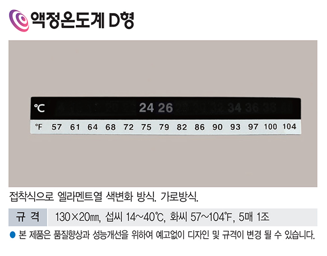 액정 온도계 D형 부착식 온도변화 색상 표시 스티커 온도 측정 스트립 VLS-2178