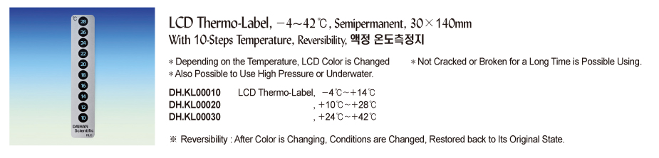 LCD 써모 라벨, -4-42°C, 반영구, 30×140mm