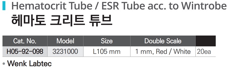 헤마토 크리트 튜브 Hematocrit Tube H05-92-098