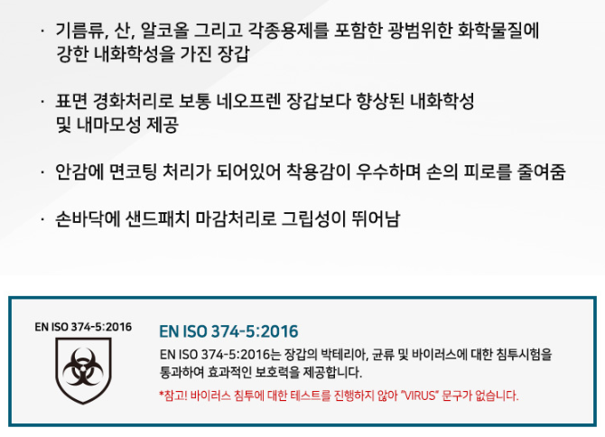 품명 ■ 네오프렌 재질로 다양한 화학 물질에 대해 강력한 보호