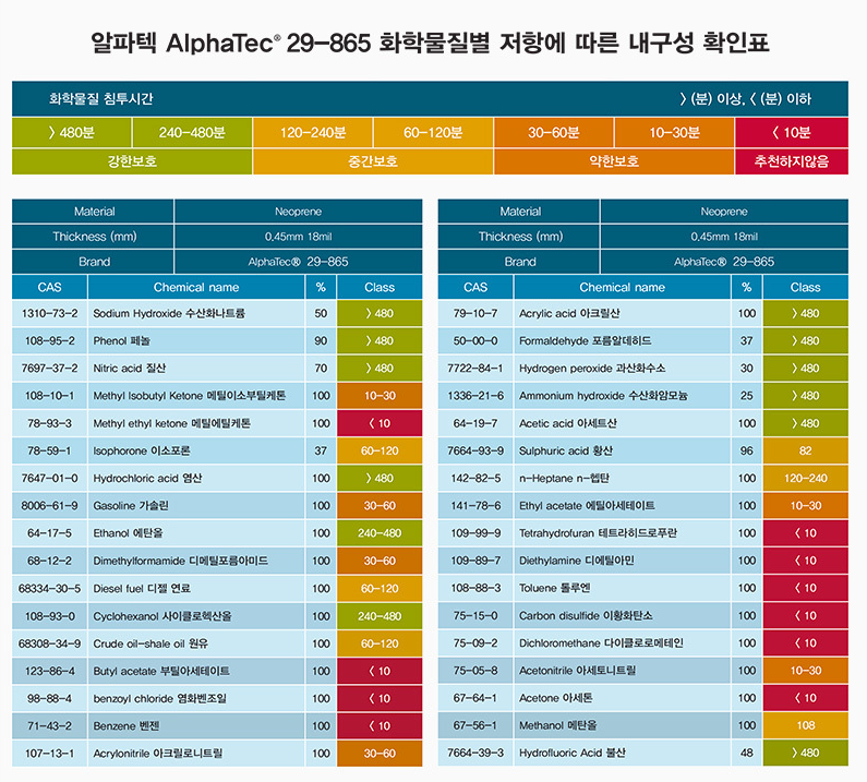 네오프렌 재질로 다양한 화학 물질에 대해 강력한 보호