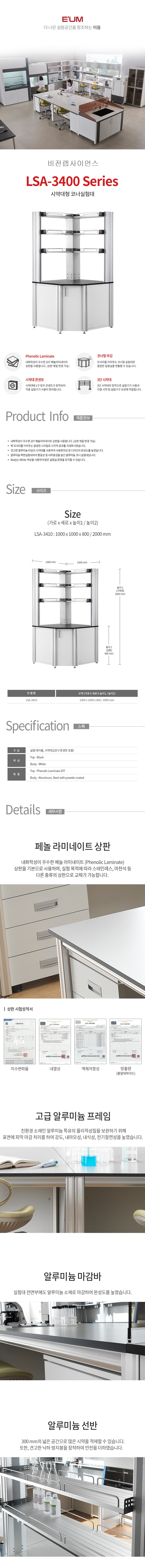 알루미늄 재질 시약대형 코너 실험대 LSA-3400