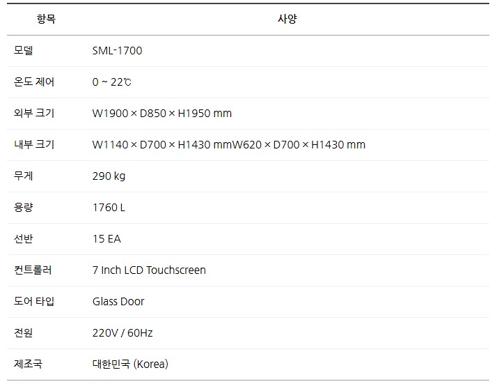 0~22℃ 범위에서 안정적인 온도 제어가 가능하며, 7인치 LCD 터치스크린 컨트롤러를 통해 직관적인 조작이 가능합니다.