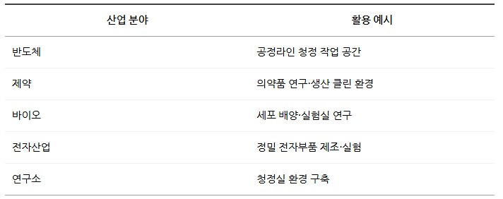 반도체, 제약, 바이오, 전자 산업 청정실 환경에 적합한 청정 공간 솔루션입니다.