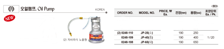 품명 ■ 오일펌프, 자바라식 노즐형 Oil Pump