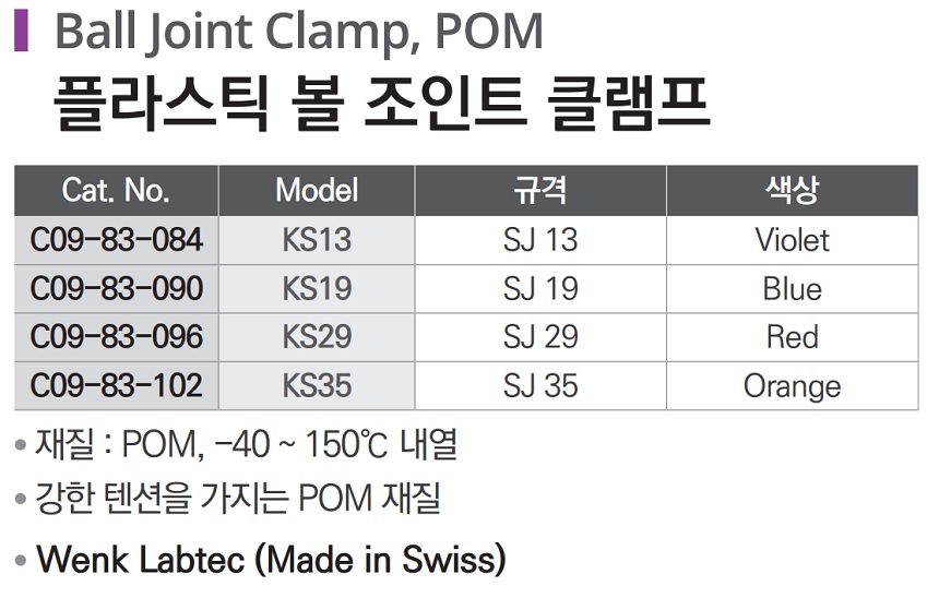 품명 ■ 재질 : POM, -40 ~ 150℃ 내열 ■ 강한 텐션을 가지는 POM재질 ■ Wenk Labtec (Made in Swiss)