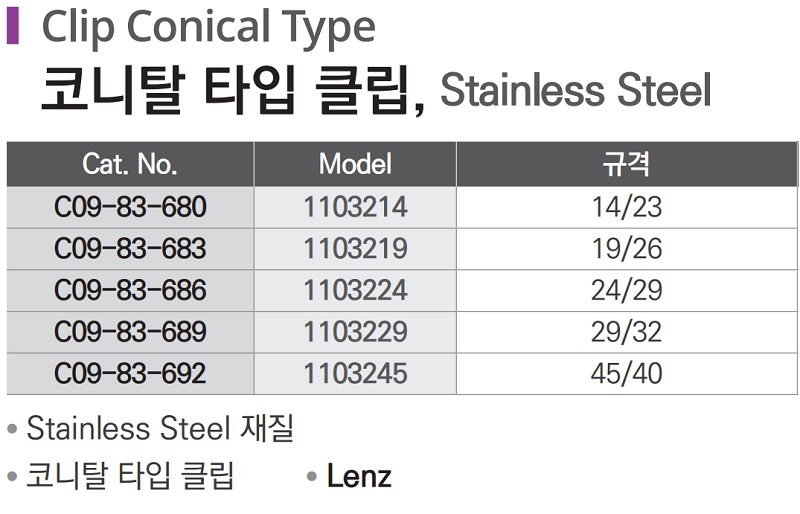 품명 ■ Stainless Steel 재질 ■ 코니칼 타입 클립 ■ Lenz