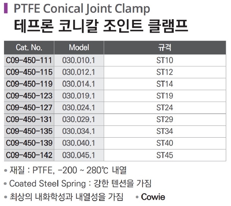 테프론 코니칼 조인트 클램프 PTFE Conical Joint Clamp C09-450-111