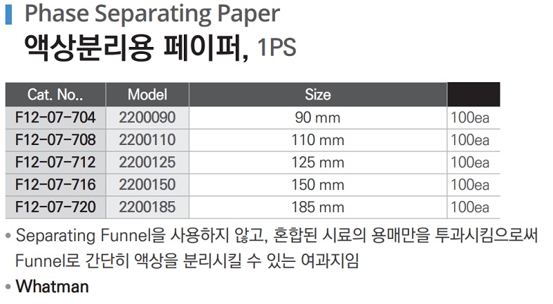 액상분리용 페이퍼, 1PS Phase Separating Paper F12-07-704