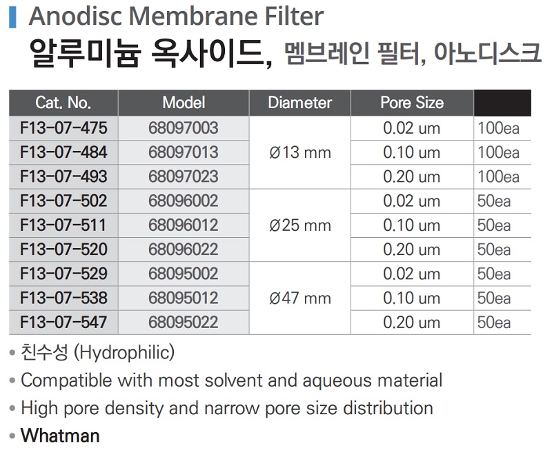 알루미늄 옥사이드, 멤브레인 필터, 아노디스크 Anodisc Membrane Filter F13-07-475