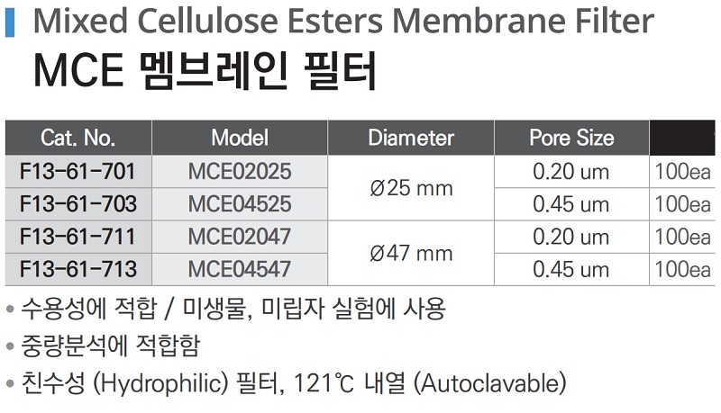 MCE 멤브레인 필터 Mixed Cellulose Esters Membrane Filter F13-61-701
