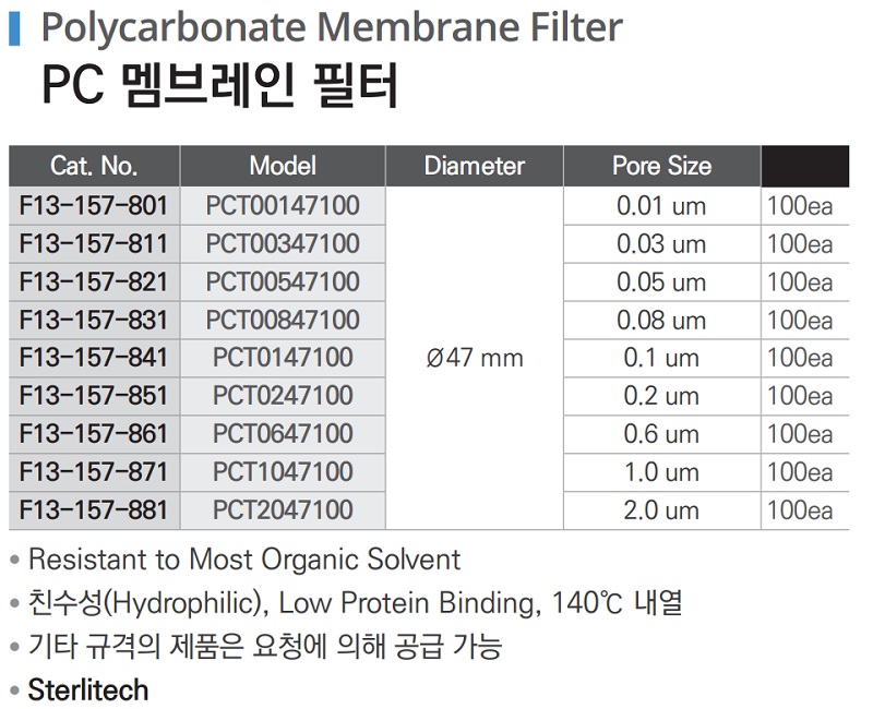 PC 멤브레인 필터 Polycarbonate Membrane Filter F13-157-801