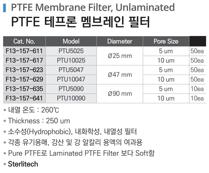 PTFE 테프론 멤브레인 필터 PTFE Membrane Filter, Unlaminated F13-157-611