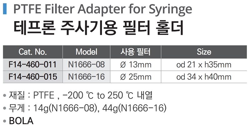 테프론 주사기용 필터 홀더 PTFE Filter Adapter for Syringe F14-460-011