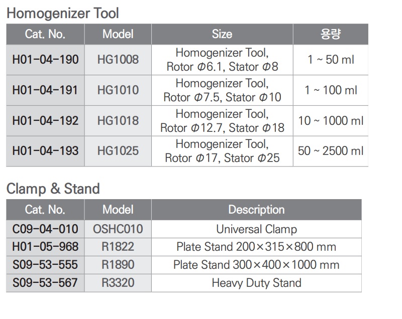 Homogenizer Tool| Cat. No. | Model | Description |