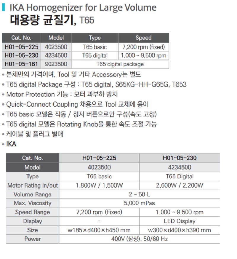 대용량 균질기, T65 IKA Homogenizer for Large Volume