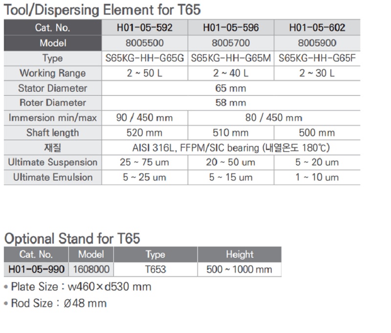Tool/Dispersing Element for T65| Cat. No. | H01-05-592 | H01-05-596 | H01-05-602 | H01-05-179 | H01-05-181 | H01-05-183 |