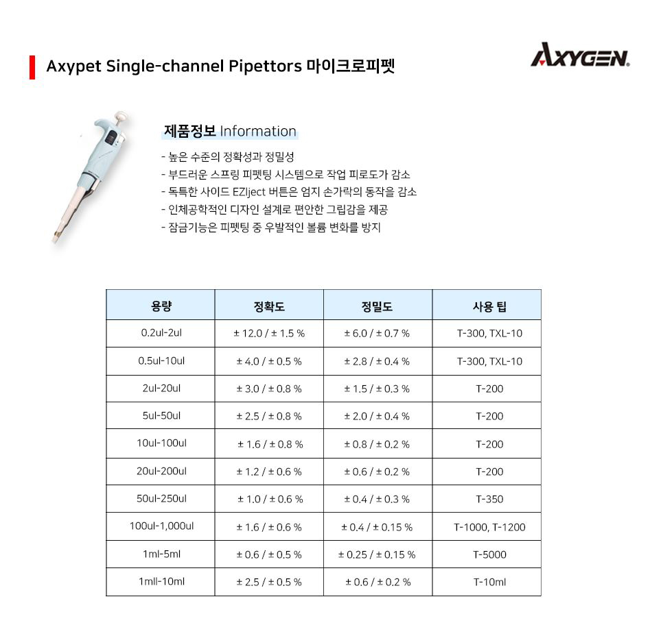 마이크로 피펫 Axypet® Single-channel Pipettors Mc00003