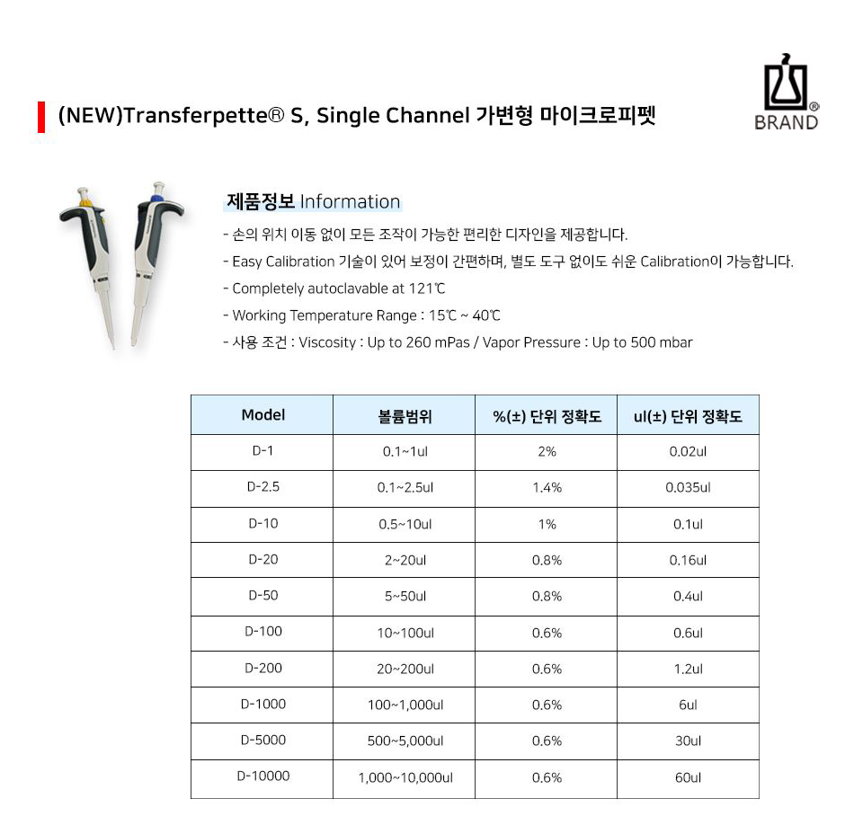 가변형 싱글 마이크로피펫 Transferpette® S, Single Channel Mc00006