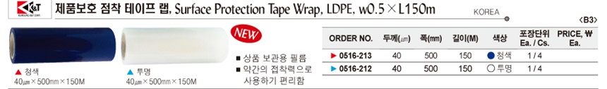 제품보호 점착 테이프 랩, Surface Protection Tape Wrap, LDPE, w0.5×L150m