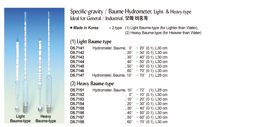 해수/담수 비중계 Hydrometer for Sea-water, 0.0005 g/㎖ divi., Length 27cm